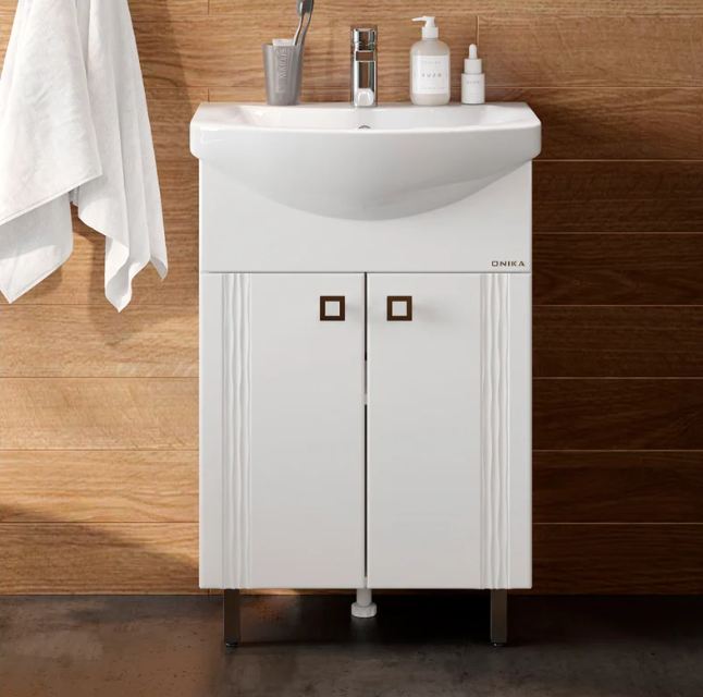 Тумба ЛИГА 55.11 — компактное и функциональное решение для ванной комнаты, предназначенное для установки под раковину и удобной организации хранения.
