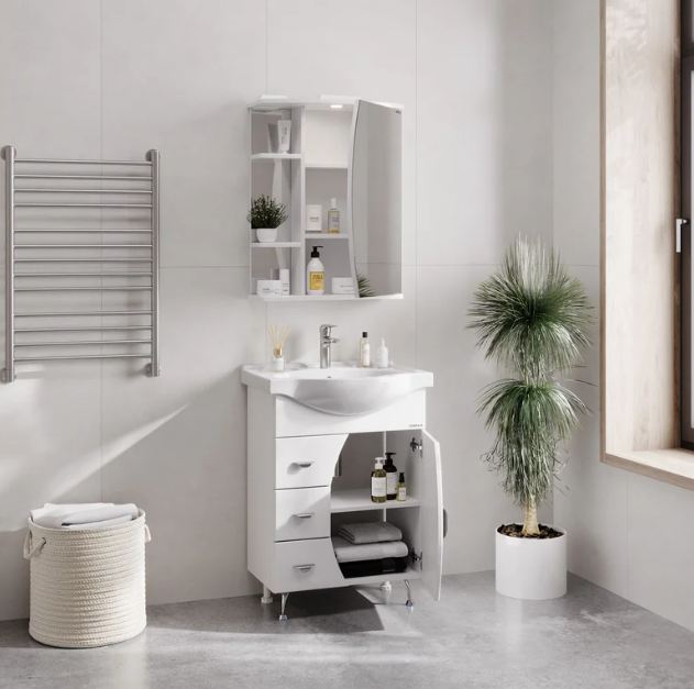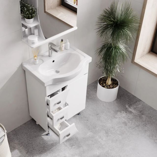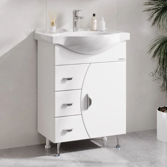 Тумба ЛУНА 60.106 (3 ящика) — практичное и функциональное решение для ванной комнаты, предназначенное для установки под раковину и удобной организации хранения.